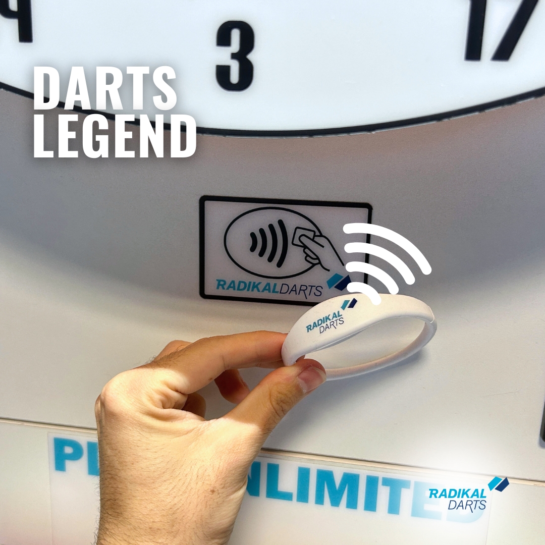 Brățară RFIDNoua brățară Radikal Darts RFID vă permite să vă identificați rapid pe tabla de darts: pur și simplu țineți brățara lângă cititor și începeți să jucați instantaneu.